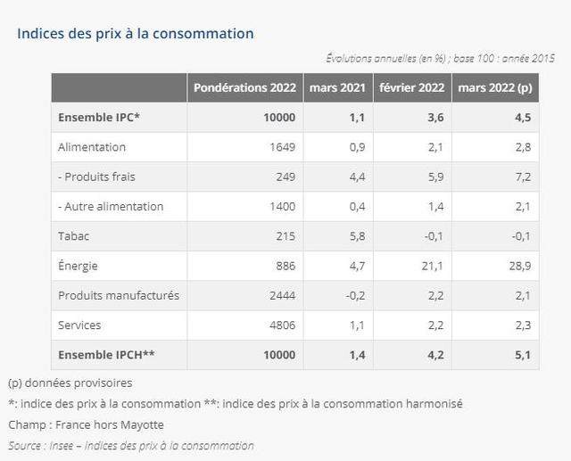 稍早之前,法国国家统计局发布的数据显示,法国3月CPI同比增长4.5%,环比增长1.4%,创上世纪80年代以来的新高。