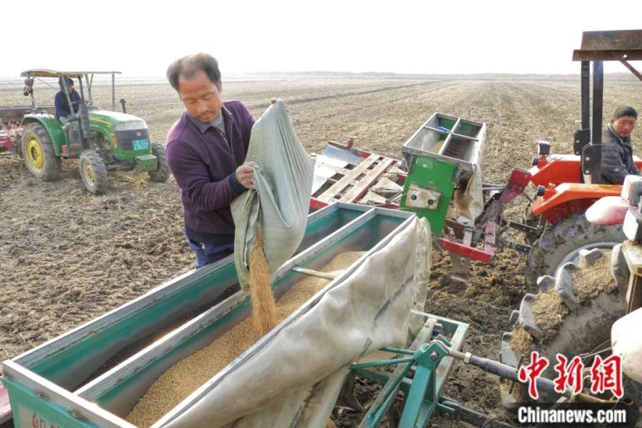 农民播种小麦。