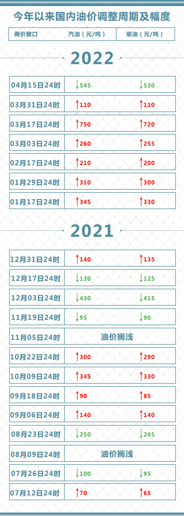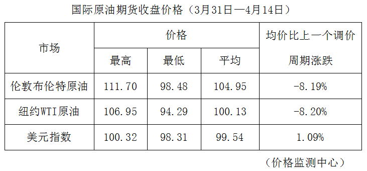 根据国家发改委消息,新一轮成品油调价窗口将于今天(4月15日)24时开启。据国家发改委价格监测中心监测,本轮成品油调价周期内(3月31日—4月14日)国际油价先降后升,总体水平较上一调价周期大幅下降。