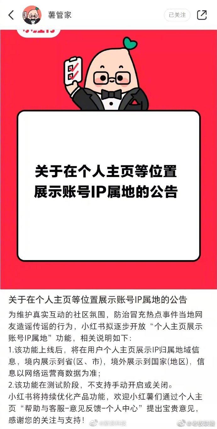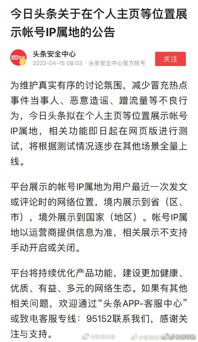 近日,今日头条、抖音、快手、小红书等各大互联网平台相继上线“网络用户IP地址显示功能”,境外显示国家,境内显示到省市,且该功能无法关闭,IP地址为强制显示项目。