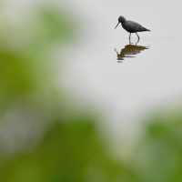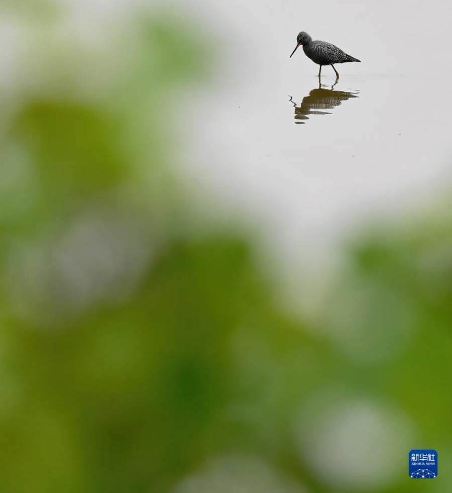 一只鹤鹬在闽江河口湿地里觅食(4月19日摄)。新华社记者 魏培全 摄