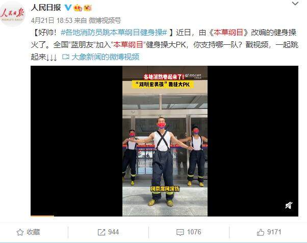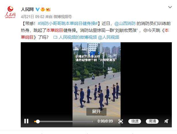 除了一些明星和网友们加入到《本草纲目》“毽子操”之外,消防员、高原战士也来打卡了。