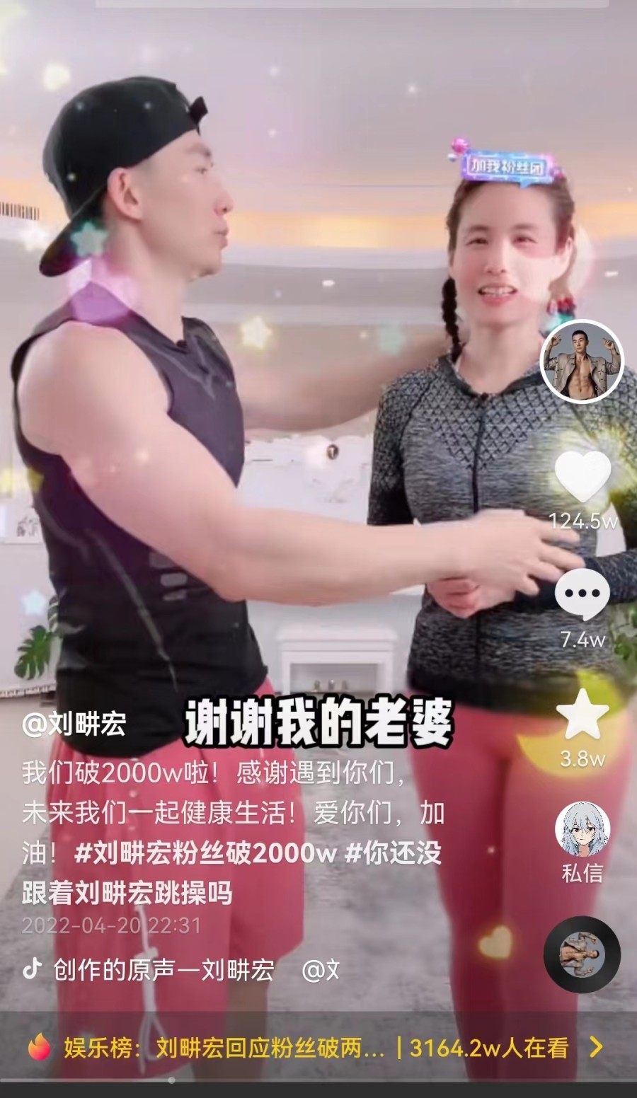 近日,刘畊宏和妻子在抖音直播燃脂健身操,截止到4月22日,刘畊宏抖音粉丝已经超过3000万,在上海居家隔离的刘畊宏,成了直播界的“现象级”健身博主。