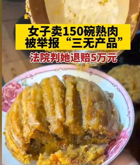 据媒体4月21日报道,在重庆忠县从事土特产销售的王女士,以4500元卖出150份扣碗类熟肉产品,因未标注产品相关信息,被顾客邵某以出售“三无产品”起诉,要求退还货款4499.16元,并赔偿44991.6元。一审法院责令其退还货款并十倍赔偿,二审法院维持原判。