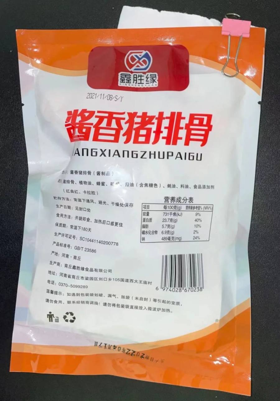 据查,该批“酱香猪排骨”是杨浦区江浦街道向上海本来生活信息科技有限公司采购的保供物资。该款标称生产商“商丘鑫胜缘食品有限公司”生产的“酱香猪排骨”包装上印刻有两个生产日期。分别为“2021/11/08/S/Y”和“2022年4月17日”,保质期为常温下180天。上海本来生活信息科技有限公司在进货后未安排工作人员进行进货查验,导致涉嫌标注虚假生产日期的食品流入市场。