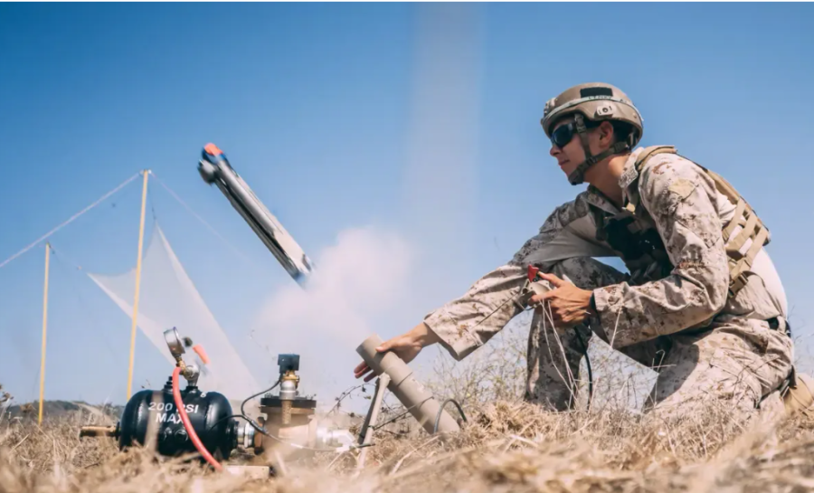 “弹簧刀”巡飞弹发射瞬间。
