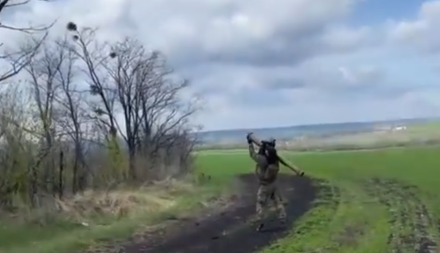 乌军士兵准备发射“欧洲燕”导弹攻击目标。