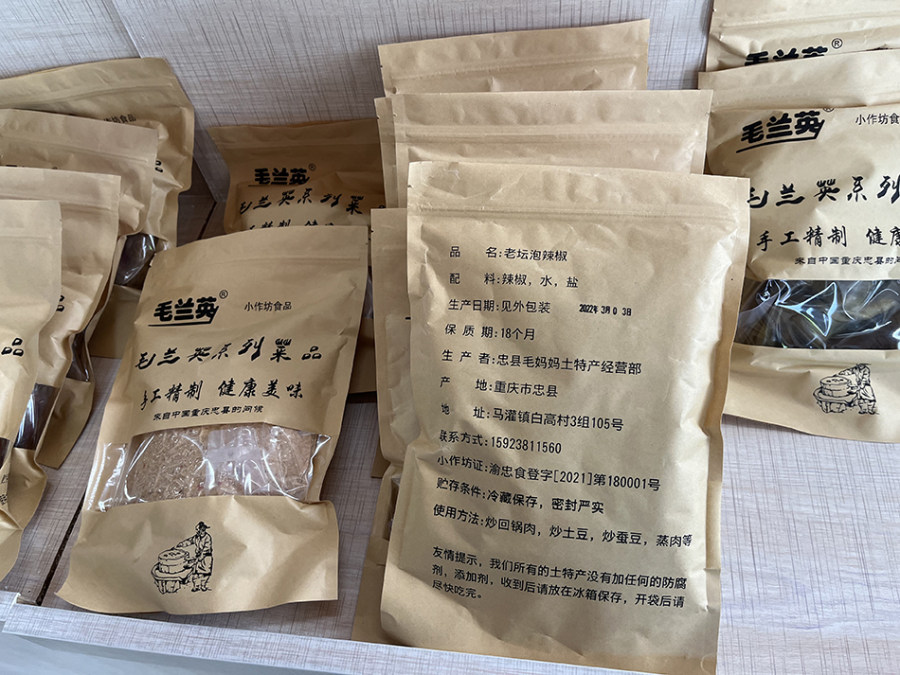 王亚琼介绍,她的客户以忠县居民为主,也有在云南、新疆打工的老乡馋家乡美食,也在王亚琼那里买咸菜。王亚琼把咸菜包装好,寄给客户。后来,她又和婆婆商议,纯手工制作一些麦酱、辣椒拿去卖。