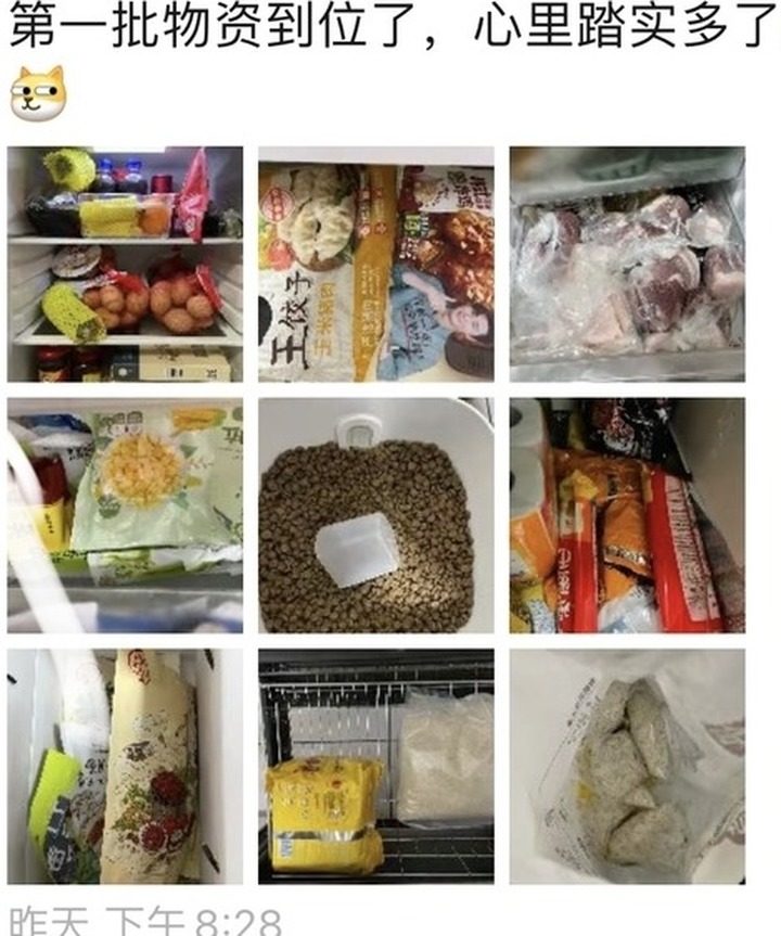 “物资到位,心里踏实多了。”24日晚,在北京一互联网大厂工作的王悦琳发布了这样一条朋友圈。配图是被物品塞得满满当当的冰箱。冷藏区域的鸡蛋、芒果、辣酱,冷冻区域的五花肉、速冻饺子、炸鸡...这些颇为接地气的食品占据了冰箱的全部空间。