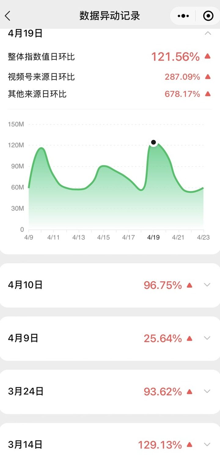 事实上,像吴越一样在3、4月入手冰箱的人不在少数。据微信数据显示,自3月起“冰箱”“冰柜”的指数值不断上升。3月14日“冰箱”的整体指数值日环比上升129.13%,4月19日“冰箱”的整体指数值日环比上升121.56%;4月12日,“冰柜”的整体指数值日环比也上升了268.72%。