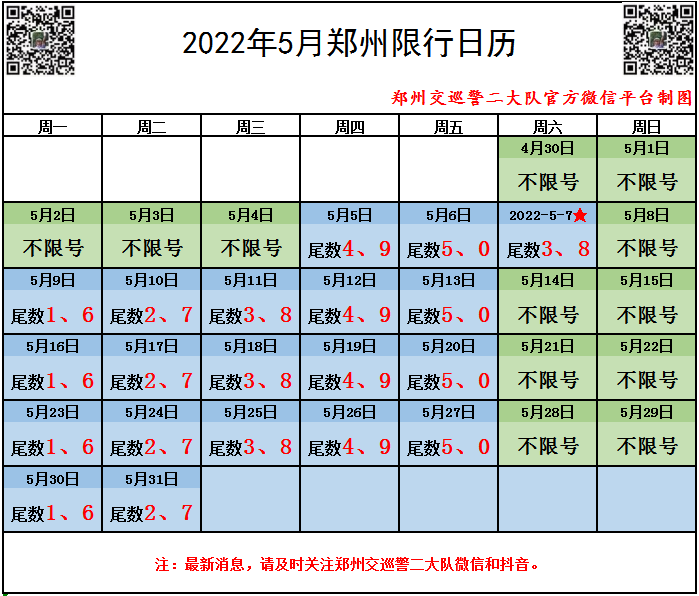 1、五一假期期间郑州市三环以内,机动车尾号不限行;