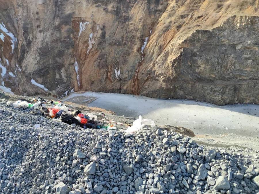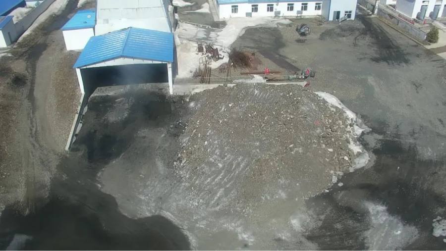 从赤峰市区驱车近四个小时,督察组根据手机卫星信号定位来到克什克腾旗西北矿业有限公司(以下简称西北矿业)。一进大门,督察人员发现厂区内生产机器上布满了积存已久的灰垢,尾矿库因为天气的原因处于冰封状态,但尾矿库的东侧仍存在清理扬散尾矿砂的痕迹。从厂区至高平台远眺,厂区内露天随意堆放着废石废渣,并没有采取任何防雨、防扬尘、防流失的措施,不少废渣混着前几天刚融化的雪水,在厂区的各个角落四处溢流。