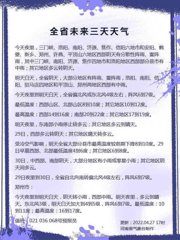 雨雨雨......未来3天河南多地大幅降温