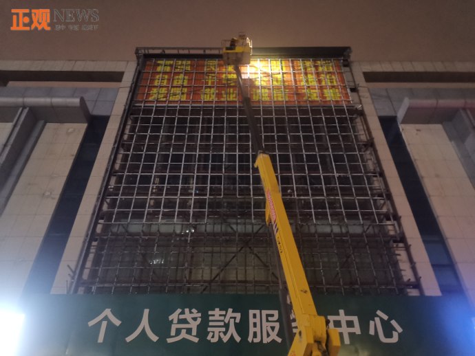 21时,暗访人员来到现场,该场所外部灯光未启用,正门大厅正在装修,电梯停运。