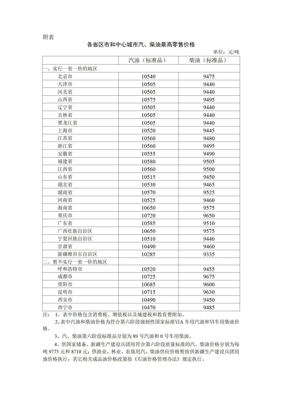 附:各省区市和中心城市汽、柴油最高零售价格