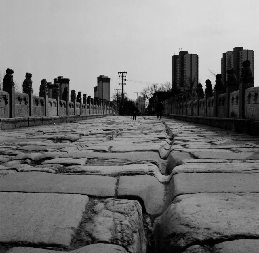李福朝介绍说,在修缮过程中,施工人员将整个桥面原有的沥青路面剥离后,原始桥面的石板和深深的车辙完整显现,水泥中孔正上方约20米长的桥面没有原始石板。施工人员将水泥中孔上方桥面原有的灰渣、三合土全部清理干净,重新夯一层三合土,再铺上沙子以及新石板、少部分可利用老石材。新石板同老石材一样,都出自河北邯郸、邢台山区。