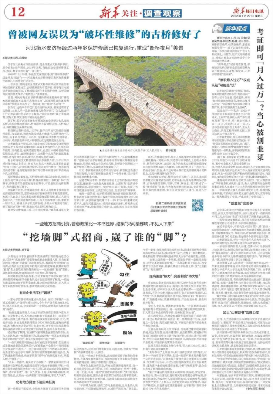 2020年11月30日,新华每日电讯刊发深度报道《是“破坏性维修”还是网友“误会”?——河北衡水安济桥修缮引发网友质疑事件调查》,引起社会广泛关注。