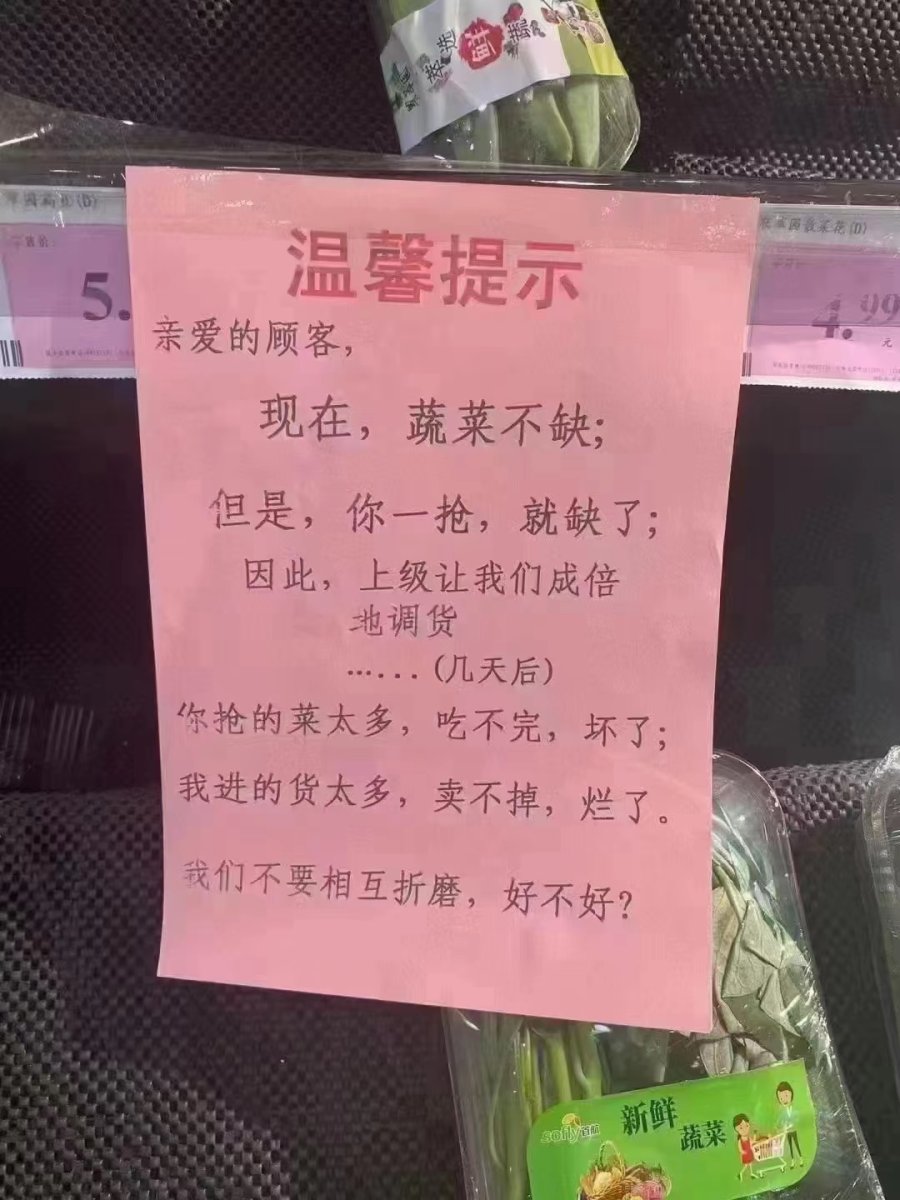 就在5月3日当天,许多郑州市民放下手头工作、暂停假期活动,加入到了“抢购生活物资”的队伍中。一时间,超市、商场、菜市场等被抢购一空成为不少郑州人朋友圈的真实写照。市民们有此反应不难理解,疫情期间,物资供应往往会面临严峻挑战,市民紧急储备生活必需品,做到有备无患,乃是人之常情。尤其今年以来,不少地方在抗疫期间出现了物资短缺问题,更容易引发市民们的担忧。