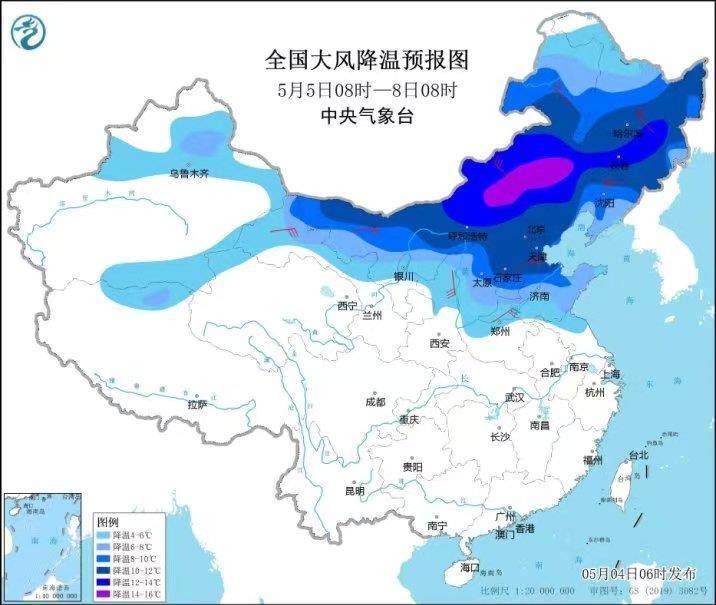 然而,明天开始一直到5月7日,新一股冷空气对我国的影响将正式展开,北方前期偏暖格局即将被打破。这股冷空气的影响将从明天夜间正式开始,受此影响,西北地区、内蒙古、东北地区、华北、黄淮等地都将出现明显大风降温天气,普遍降温幅度可达4~10℃左右。