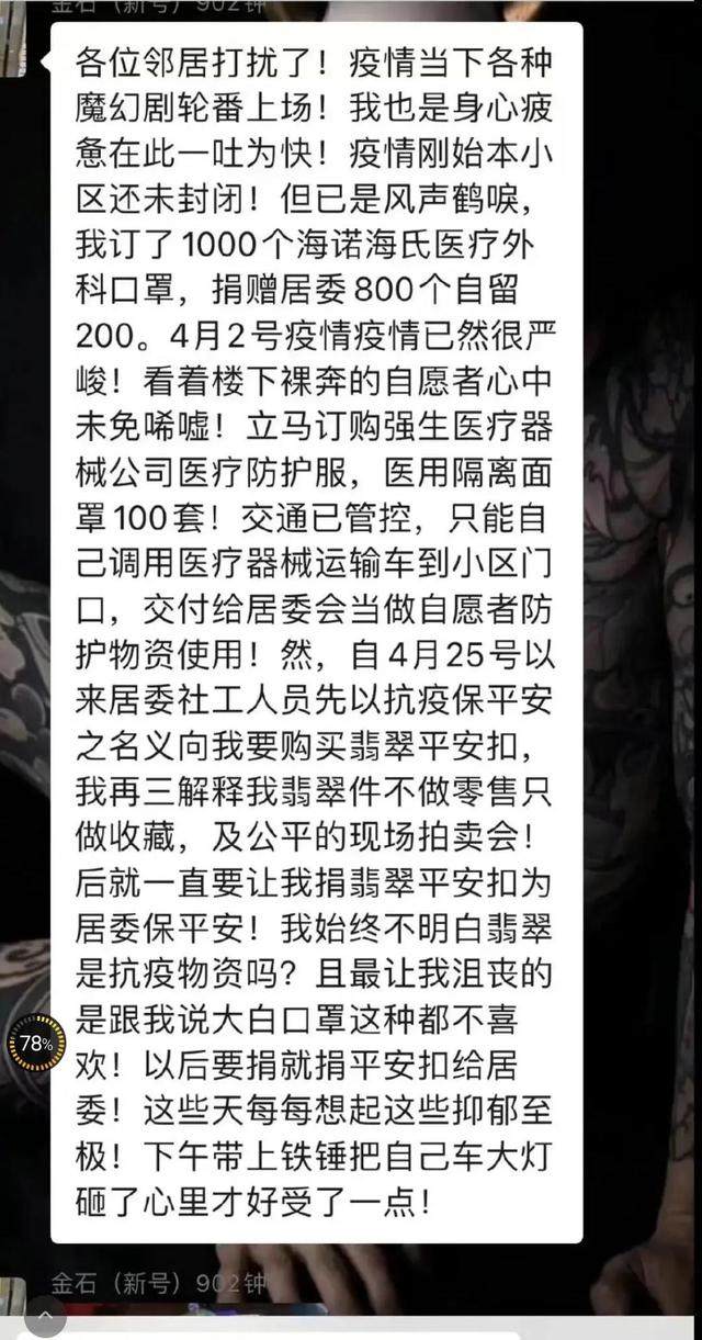 5月3日晚,有网民发文举报“三林镇一名居委干部向爱心居民索要翡翠平安扣作为抗疫物资”,引发网民关注。