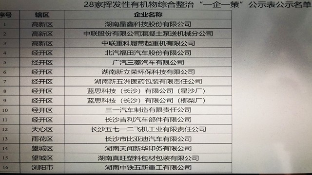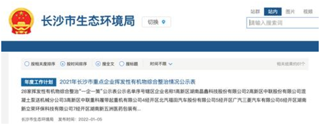记者从长沙市生态环境局网站上查阅到,今年1月5日,长沙市生态环境局曾发布了一份对重点企业挥发性有机物综合整治情况公示表,共有28家企业榜上有名,其中序号13就是位于雨花区的长沙比亚迪。