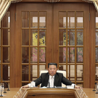 当地时间2022年5月12日,朝鲜平壤,据朝中社报道,朝鲜最高领导人金正恩出席朝鲜劳动党第八届中央委员会第八次政治局会议举行。会议称,朝鲜出现奥密克戎毒株亚型BA.2感染病例,决定将国家防疫体系转为最大紧急防疫体系。