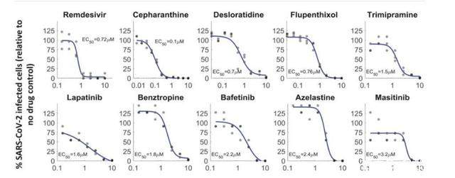 在2021年7月一篇刊登在《科学》杂志的文章印证了这一结论:研究者将千金藤素与25个其他的候选化合物放在一起进行了比较研究,结果显示,千金藤素抗新冠病毒的EC50(引起 50%最大效应的浓度,数字越低越好)只需0.1 μM,远低于其他候选药。