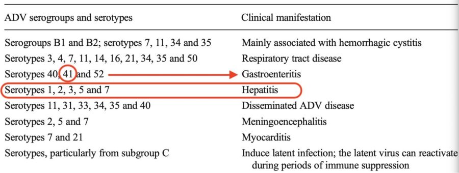 可查资料显示,就以这次被高度怀疑的腺病毒41型而言,多导致肠胃炎,其主要组织嗜性是肠胃道,而不是肝脏。