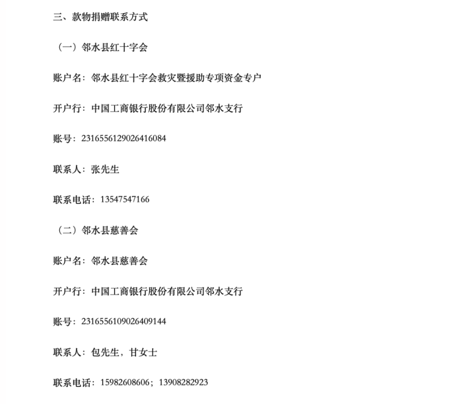 邻水县物资捐赠联系方式。邻水县人民政府官网截图