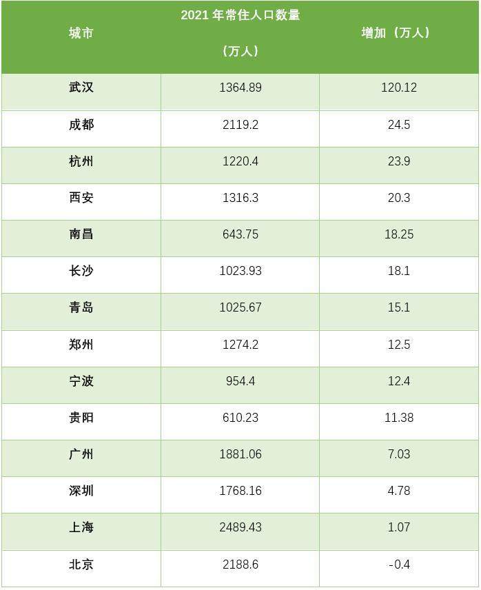 2021年,新一线城市和部分二线城市的人口增长势头,明显超过了一线城市。