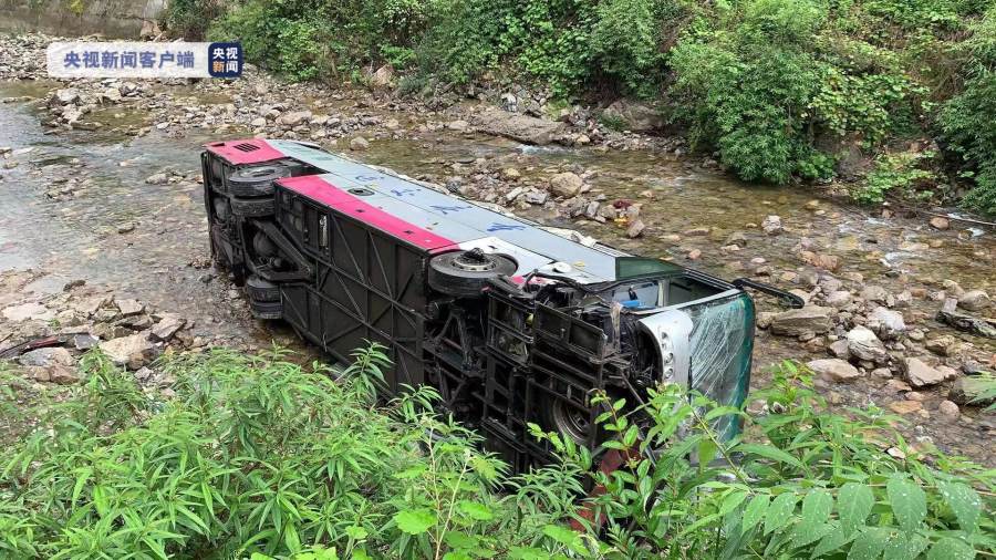 重庆一大巴车翻入河沟:初步估计车上载有20余人