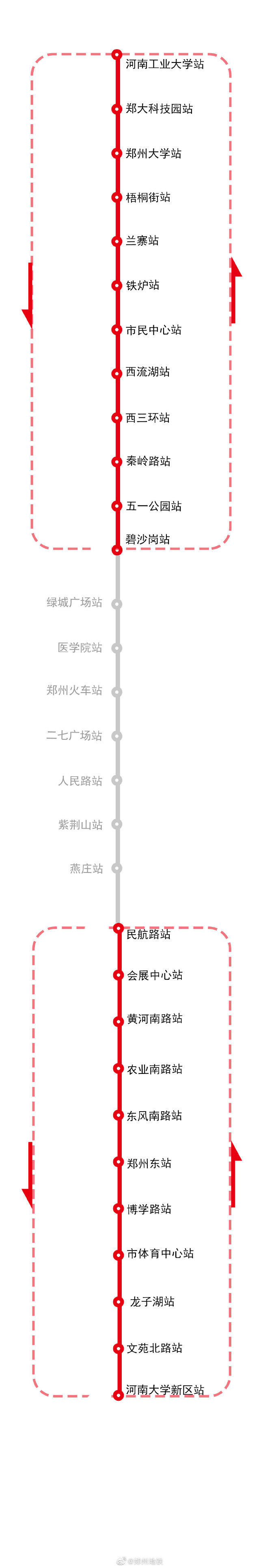 郑州地铁1号线绿城广场站至燕庄站周末暂停区间运营