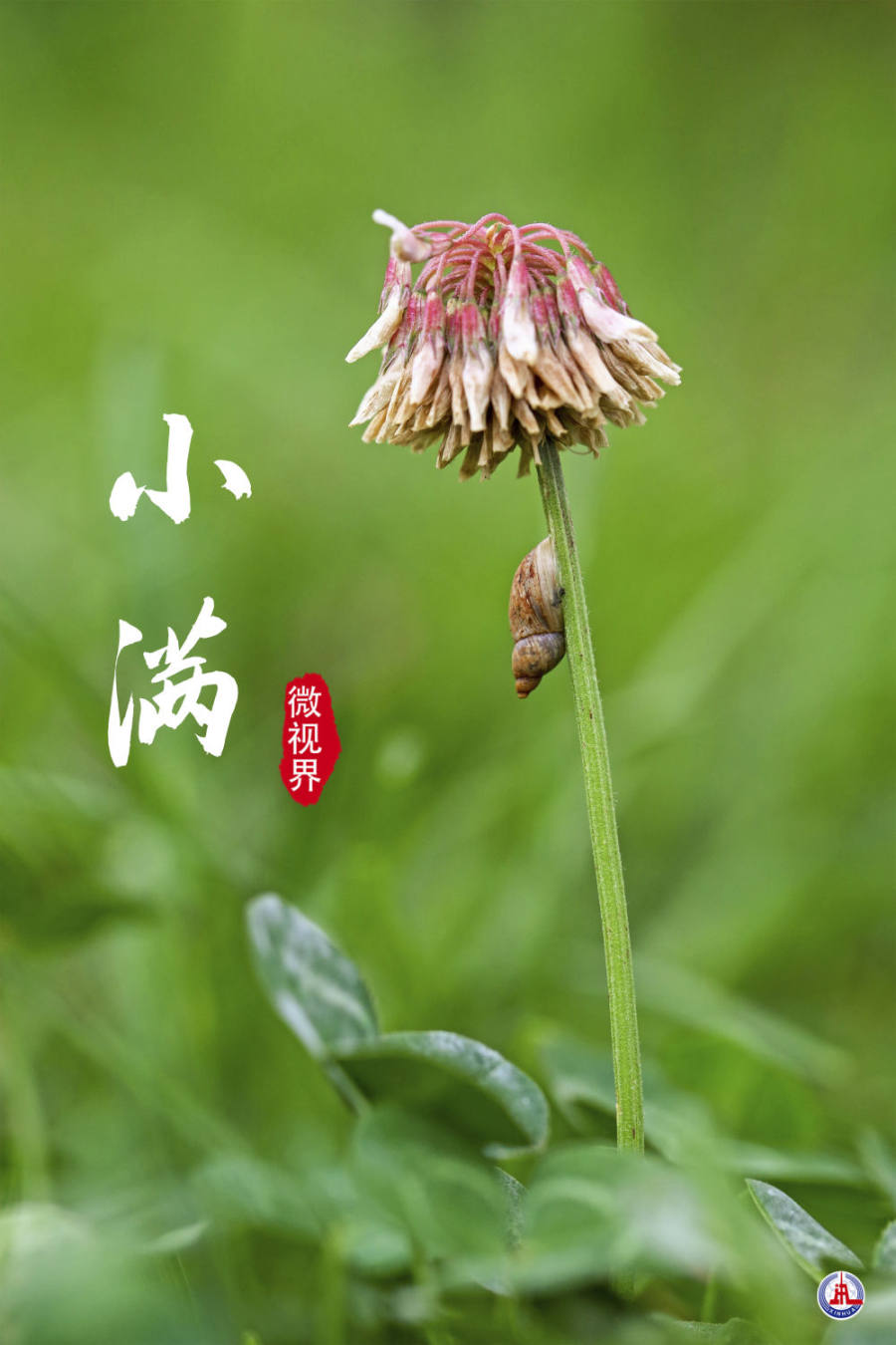 ↑云南省红河州蒙自市,小螺爬上渐枯的车轴草。新华社发
