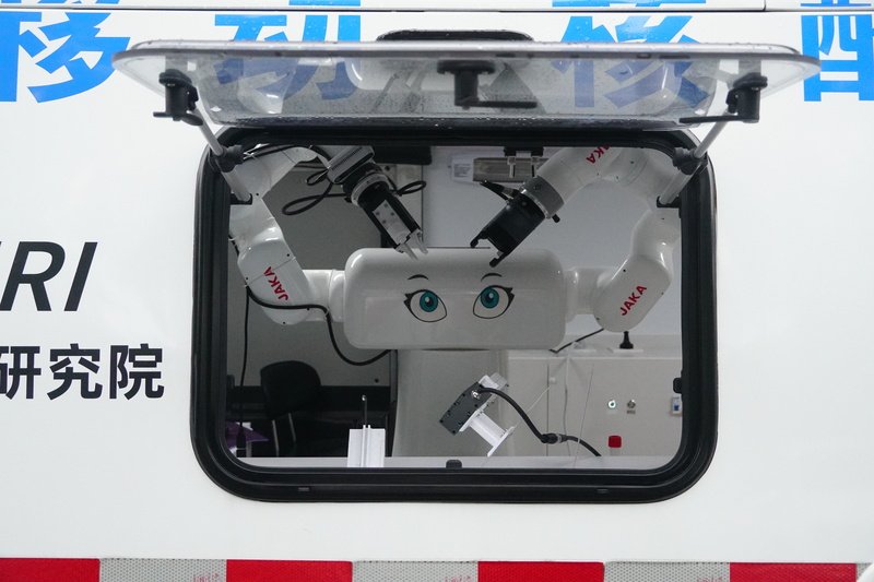 在市经信委的指导下,上海人工智能研究院智慧医疗中心首席科学家、上海交通大学机械与动力工程学院副研究员闫维新与节卡机器人技术团队合作,在很短时间内研制出双臂机器人及其配套设备。“我们用的机械臂是节卡MiniCobo协作机器人,电爪是从公司展厅的机器人身上拆下来的。其他设备大多是3D打印出来的,等完全复工后,我们再开模具、做机械加工。”闫维新指着核酸采样车内的机器人说。