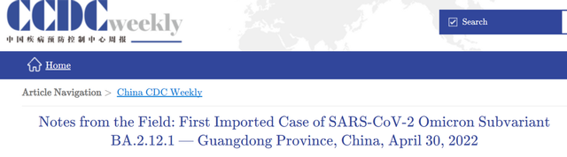 我国报告输入首例BA.2.12.1和BA.4感染者
