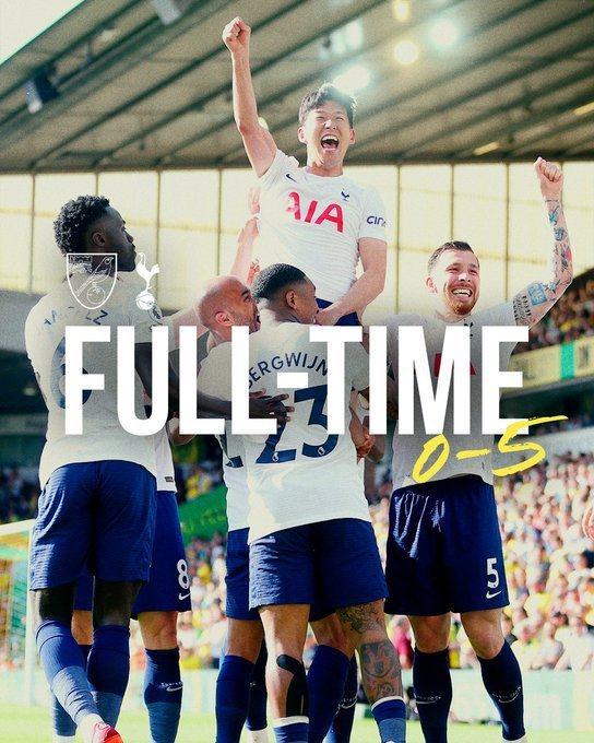 在争夺联赛第4的较量中,占据主动的托特纳姆热刺没有让机会溜走,他们客场5:0大胜诺维奇,继曼城、利物浦与切尔西之后,获得了下赛季欧冠联赛的参赛资格。