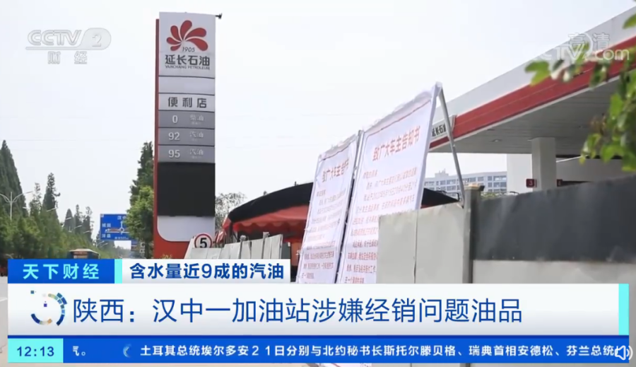 据央视财经《天下财经》报道,5月21日,陕西省能源质量监督检验所出具的检验报告显示,涉事加油站的汽油样品水分占到油品的88%。目前,涉事加油站因涉嫌销售伪劣产品罪已被当地警方立案侦查,加油站相关人员被控制。