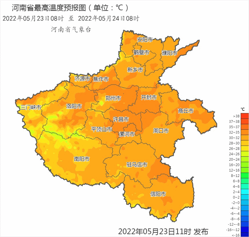 北中部最高气温35℃以上,部分县市可达37℃以上