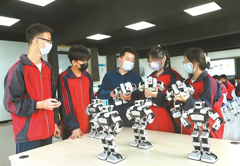 图为近日,在河北省石家庄市井陉县职业技术教育中心,老师指导学生学习机器人相关知识。 新华社记者 骆学峰 摄