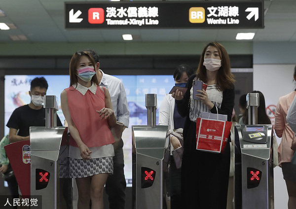 台湾民众戴口罩出行 人民视觉 资料图