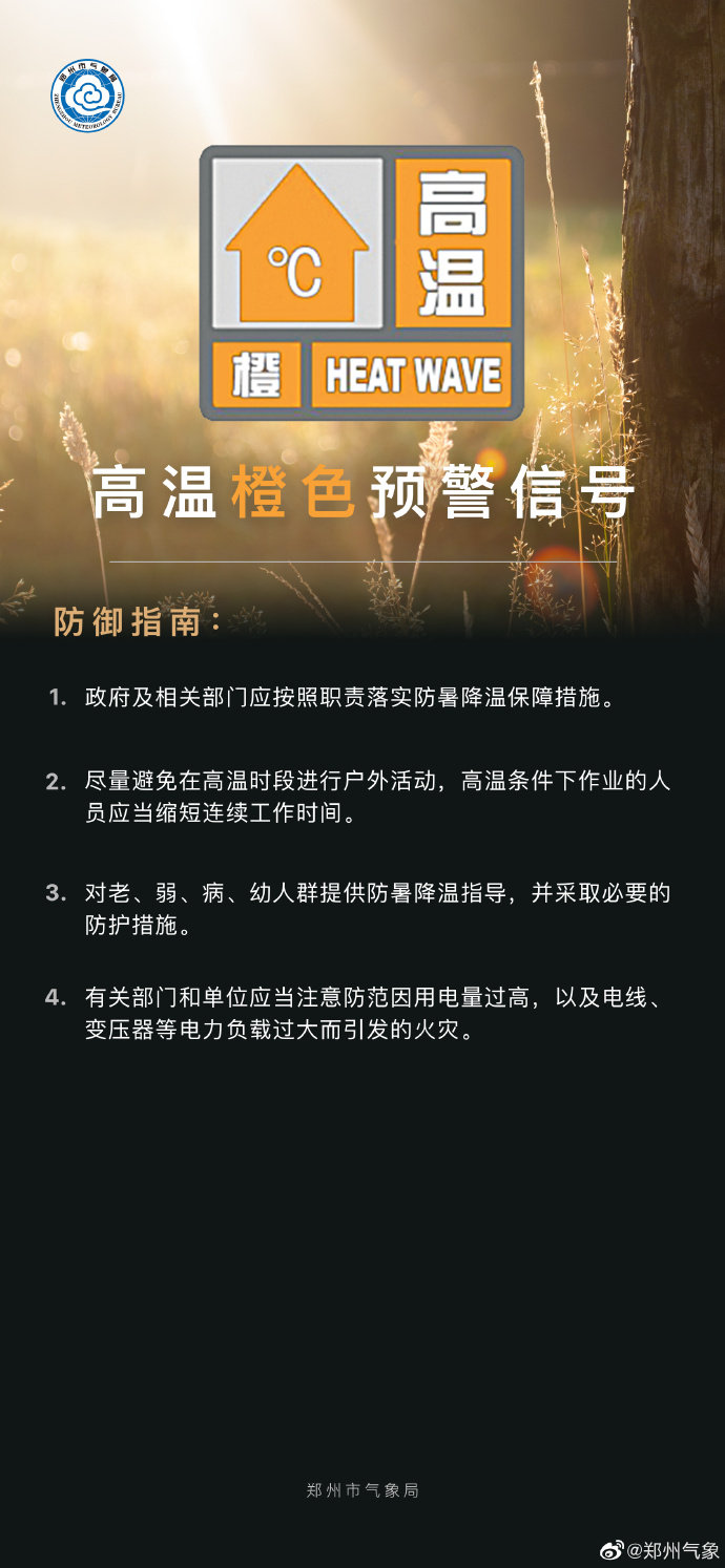 郑州发布高温橙色预警