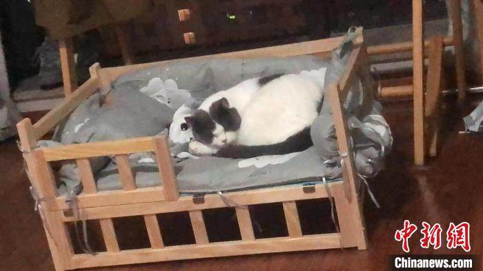 一宠物猫睡在专属床上。 受访者 供图