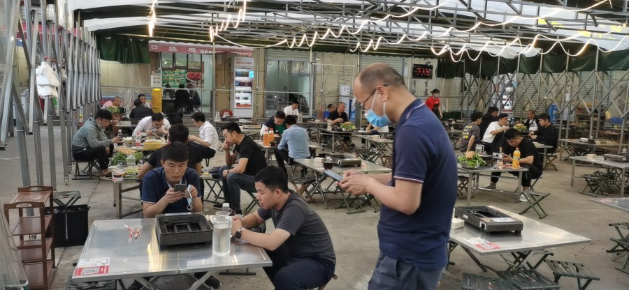 夜幕降临,华灯初上。郑棉四厂家属院内四厂烩面食客渐多,烤羊肉串、烤腰子、烤生蚝的炭火烧得红彤彤的,一刷油蹿得老高。郑州恢复堂食,热闹喧嚣的夜市中那抚人心的城市烟火,仿佛又回来了。四厂烩面老板赵民侃介绍,客人上座率已经恢复到疫情前的五成多。堂食开放后,桐柏南路火锅店翻滚的鲜羊肉香味冲击着食客的味蕾,顿丘“碳锅羊肉”老板李自阳也忙得不可开交,不仅上了内蒙新鲜切羊肉,还推出了自酿啤酒,夏夜大排档小方桌上,顾客悠闲小酌,感受着万家灯火。