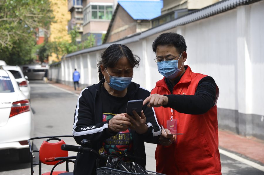 在中原区林山寨街道每次核酸检测的现场,78岁的白勤和84岁的张国雨这两位老党员,不顾年迈当起维护秩序的志愿者。白勤发挥医学专业的优势,还在志愿服务时向居民宣传防疫小知识。 “夫唱妇随,同心抗疫”。疫情期间,颍河路105号院的周勇、张若惠夫妻主动报名当社区防疫志愿者。