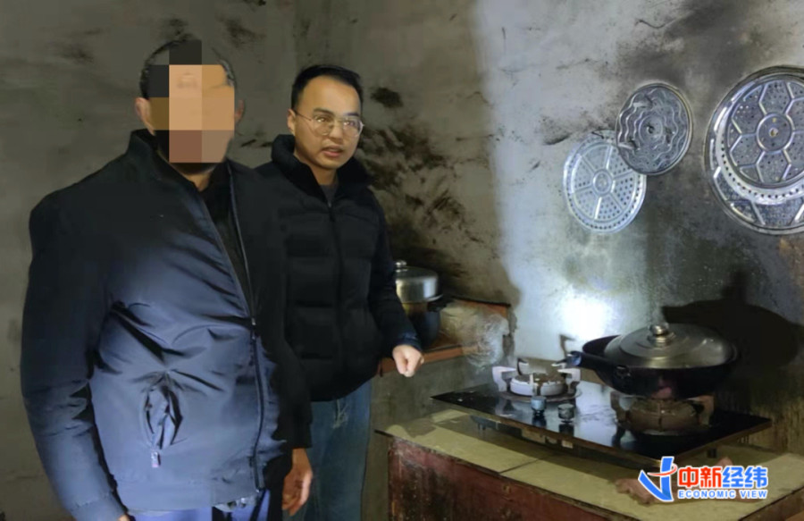 2022年2月18日,半夜前往村民家中进行燃气安全排查。受访者供图