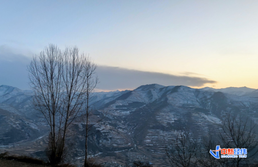 傍晚刚结束走访的王震(化名)翻过山岭时拍下的风景。受访者供图