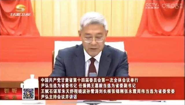 尹弘当选为甘肃省委书记,任振鹤、王嘉毅当选为甘肃省委副书记。