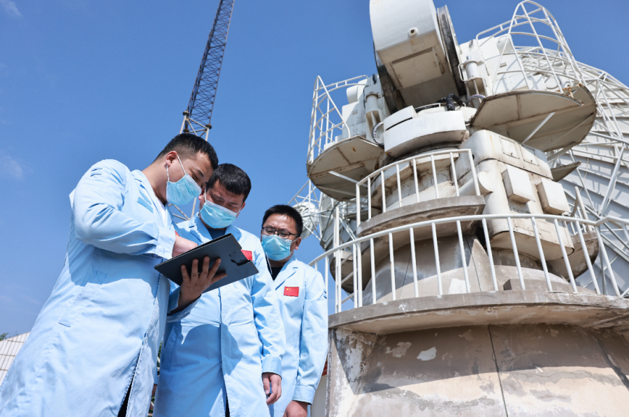 同时参加上升段测控任务的渭南测控站主要负责火箭外弹道测量任务,并在飞船入轨后承担对飞船及空间站组合体的测控工作。由于夏季的到来,雷雨天气频发,气温也随之升高,对参试设备的考验也随之加大。对此,站里维护分队克服天气带来的不利影响,在任务前一个月,每天进行设备巡检维护,确保信路畅通,设备状态最佳。