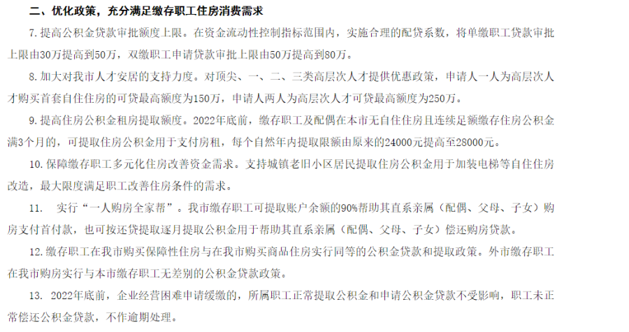 方案提出,提高公积金贷款审批额度上限。在资金流动性控制指标范围内,实施合理的配贷系数,将单缴职工贷款审批上限由30万提高到50万,双缴职工申请贷款审批上限由50万提高到80万。