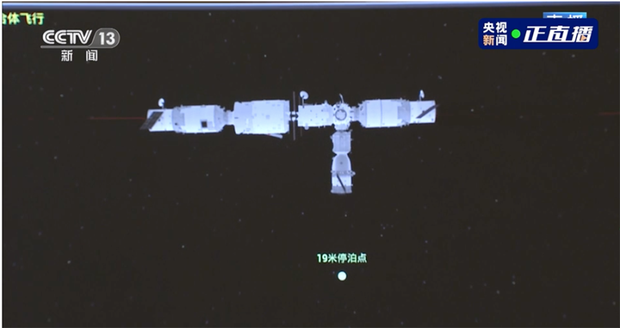 神舟十四号与空间站组合体交会对接成功 视频截图